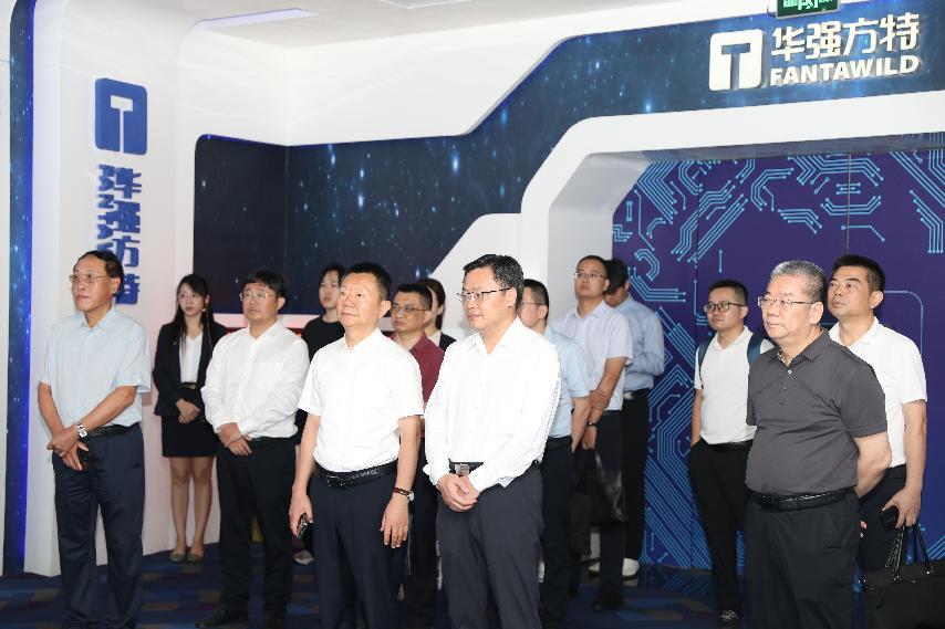 8月15日,揭阳市委副书记王绍乐一行莅临华强集团,参观了华强方特文化科技展厅,并与集团党委书记张恒春座谈交流。揭阳市常务副市长蔡淡群,揭阳市政府党组成员、秘书长江玉城,揭阳市榕城区区委书记韦锋,华强方特集团董事长、总裁刘道强,华强方特集团董事、执行总裁顿忠杰等参加座谈。